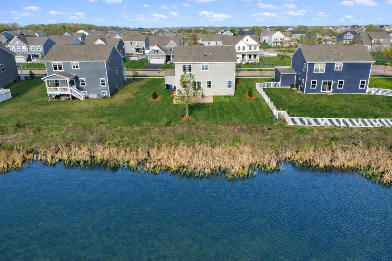 ENTERTAINER'S DREAM COME TRUE ~ this MAJESTIC BEAUTY has 4 BEDROOMS and a FINISHED BASEMENT and sits on a POND with a PUTTING GREEN out back! Inside you're going to FALL IN LOVE with HIGH END EVERYTHING, including an UPDATED QUARTZ KITCHEN, appliances (including a BESPOKE SAMSUNG fridge) ALL INCLUDED and SMART TECHNOLOGY for your front door and HVAC system. Main and second floors overlook BEAUTIFUL WATER VIEWS while downstairs everyone will enjoy the FINISHED BASEMENT with an IMPRESSIVE SPEAKEASY and as much GLAMOUR & INTRIGUE as the Prohibition era....astounding detail such as ANTIQUE QUARTER SAWN OAK BUILT-IN cabinetry, OAK DOORS from the 1930's and CRYSTAL like doorknobs. CIGAR LOVERS will appreciate the HUMIDOR and SMOKE EXTRACTOR SYSTEM which has kept the home ODOR FREE ~ your nose knows! With OVER 3000 finished square footage, this QUALITY home has a CEMENT BOARD exterior, pretty front PORCH, sealed & insulated 3-car garage and brick paver patio (20x23). Your afternoon shaded barbecues will never be more enjoyable! Only 3 years NEW & BETTER THAN NEW CONSTRUCTION (in sought after Settlers Ridge), UPSCALE is an understatement as THIS ONE is in a CLASS OF ITS OWN!