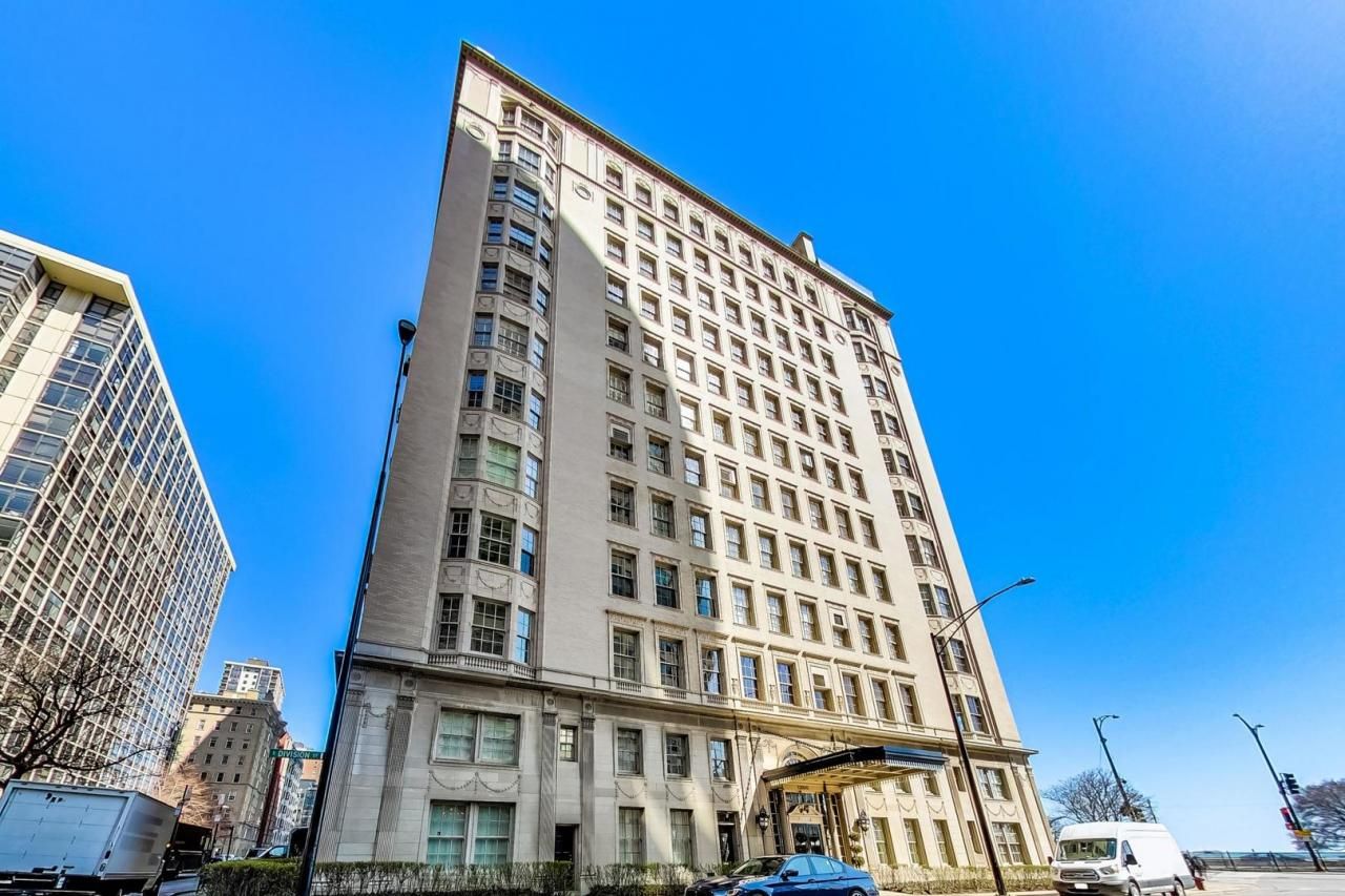Meticulous details flow around every corner of this professionally designed one bedroom home. Located in a boutique, architecturally significant Benjamin Marshall building, this home has a vintage charm that's been revived with a warm, refined ambience making it the ideal, relaxing city retreat. Fine points include custom millwork, solid core doors with original brass and crystal hardware, premium textile wall covering, elegant lighting and flawless dark walnut hardwood floors. Enter into the formal foyer and admire the one-of-a kind classic designer look of the broad crown molding, subtle patterned wall coverings, gorgeous antique chandelier and turn-of-the century sconces. The foyer leads into the massive living room, with 11 foot ceiling heights with walls enveloped in a pleasing, textured grass cloth, thick baseboards and wainscoting. Twin drum shades from Ralph Lauren hang from the coffered beams in the ceiling. Newly installed hand trimmed fabric curtains and Hunter Douglas silhouette shades frame the impressive windows. The eat-in kitchen is intimate and tucked on the other side of the home and features integrated high-end Dacor appliances, custom paneled cabinets, chequerboard marble tile floor and newly installed window shades. In the bathroom find a totally timeless space with floor-to-ceiling Carrera marble tile work, beautiful designer sconces and custom mirrors and storage. The remarkable sized primary bedroom features a plush oyster print carpet, Hunter Douglas Duette blackout shades and a French door walk-in closet. Relish the summer nights on the recently renovated common roof deck for incredible lake and city views, and the perfect spot to watch the Air and Water Show. Attractive Gold Coast location close to Oak Street Beach, the Lakefront path, Lincoln Park Farmer's Market and the city's best restaurants and shopping. Large storage unit included. Valet Garage parking available in the building next door for $425/month. Magnificent pre-war building with doorman, onsite engineer and management company. Assessments include heat, water, RCN cable, internet, doorman, elevator and common area maintenance. Assmt: $1,486.36/mo Tax: $8,043/yr.